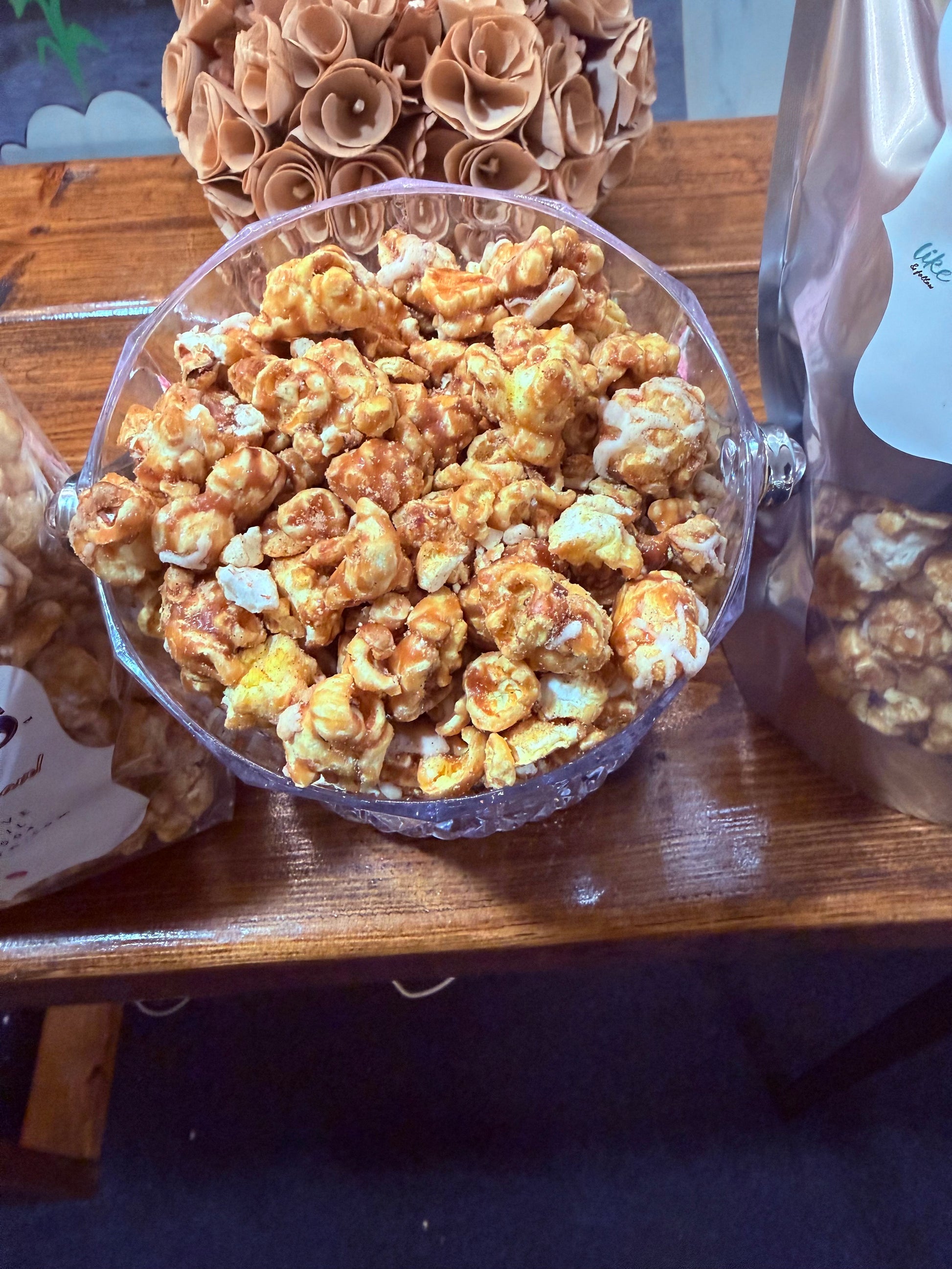 From the moment you open the package, the enchanting aroma of freshly baked cinnamon buns will captivate your senses. The sweet and spicy notes will instantly evoke the comforting feeling of enjoying a warm cinnamon bun straight from the oven. Each popcorn kernel is generously coated in a velvety layer of buttery caramel, creating the perfect base for the decadent cinnamon bun flavor. The caramel not only adds a luscious sweetness but also ensures a satisfying crunch with every bite.